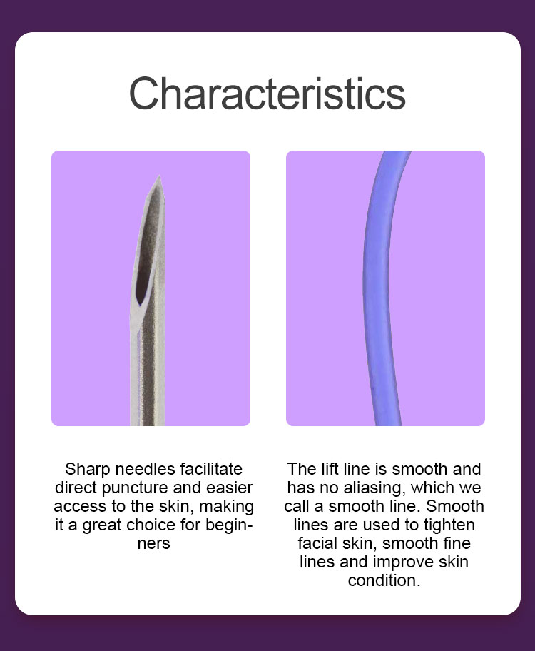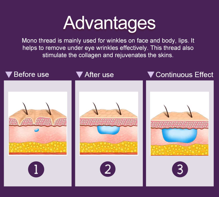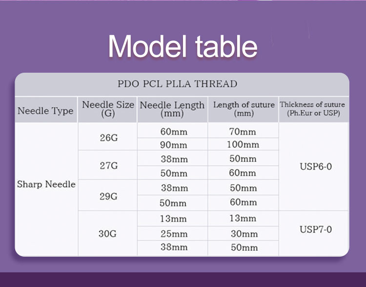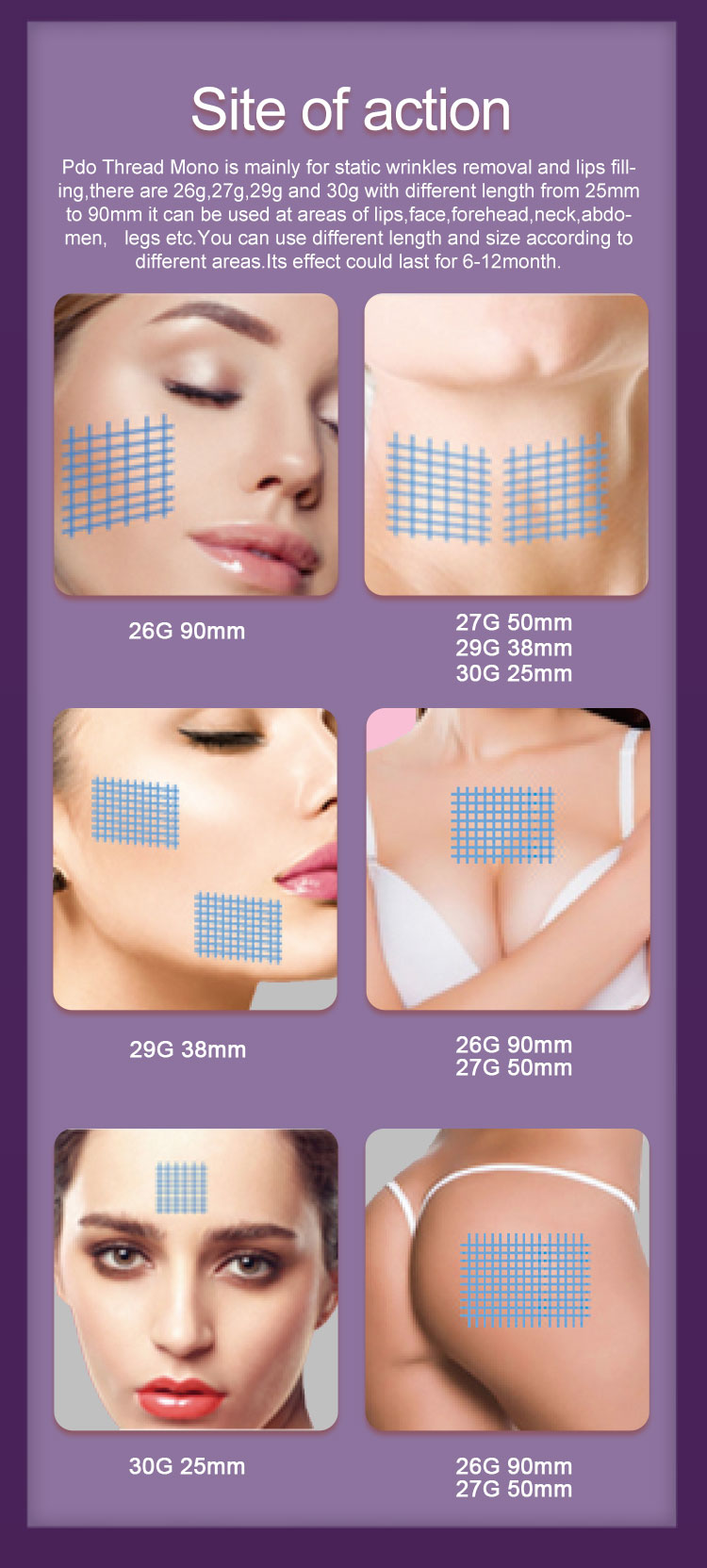 Type: Mono Thread Material: PDO, PCL, PLLA Model: 26G 38/60/90mm 27G 38/50mm 29G 38/50/60mm 30G 25/38mm Application: Face wrinkle, Neck, Cheek, Frown Lines, Decollete, Hand, Buttock