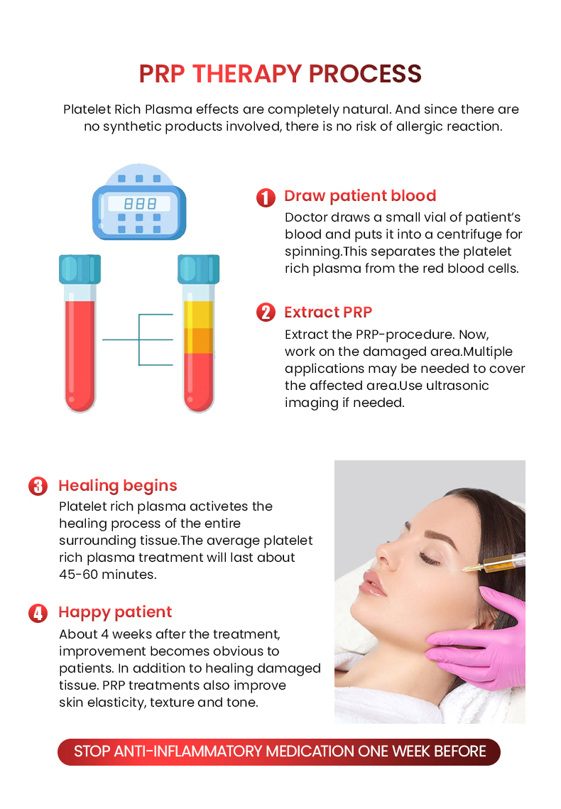 Platelet Rich Plasma effects are completely natural. And since there are no synthetic products involved, there is no risk of allergic reaction.